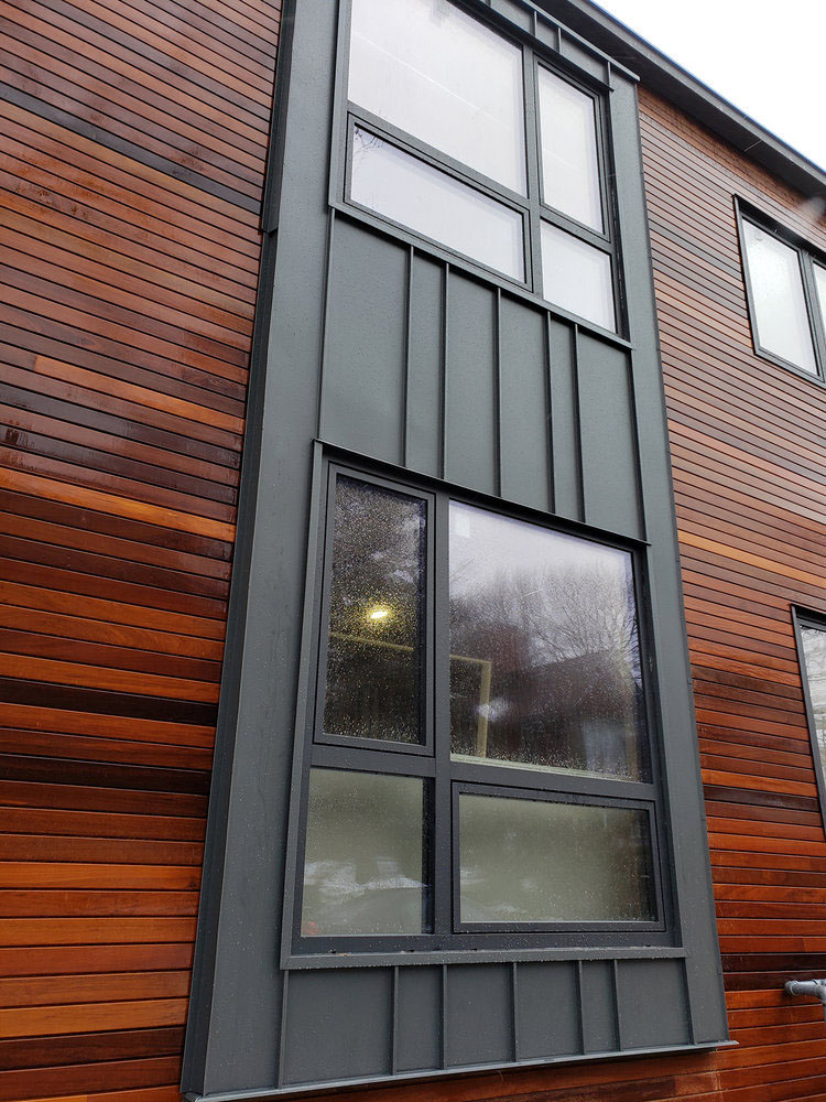 The Decalu94 frame and sash are flush with the exterior and surface mounted to the interior.